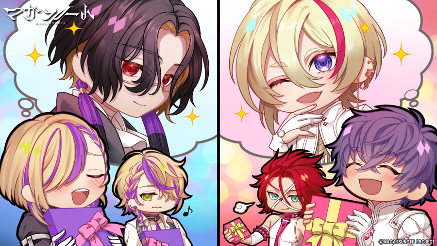 https://magatsunote.com/novel/short_story/2024/ss-valentine2024/ マガツノート Official Siteダークな楽曲×ストーリーで展開する新メディアミックスプロジェクト「マガツノート」公式HPmagatsunote.com "병아리! 「공평」하게 심사하지 않으면 어떻게 될지 알고 있겠지—?""제삼자의 관점에서 확실하게 판단해 주세요, 병아리 님♪" 바로 저, 엔슈가 「돌격! 병아리 리포터!」의 발렌타인 기획으로 인터뷰를 하기 위해 【육도진】에 찾아가 보니, 그곳에서는 「초콜릿 품평회」라는 것이 개최되려 하고 있었습니다. "에에, 그러니까……, 죄송해요. 애초에 왜 품평회를 하시나요?" "발렌타인은, 좋아하는 사람에게 사랑을 강요하는 풍습이 있다죠♡ 그러기 위해, 옛날..